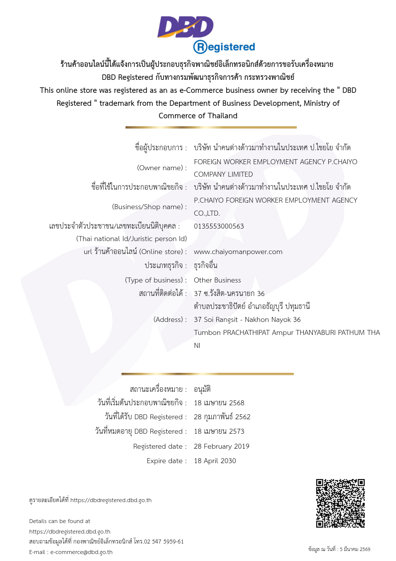 ดำเนินการถูกต้องตามกฎหมาย 100% มีเอกสารรับรองจากหน่วยงานรัฐ บริการดูแลแรงงานต่างด้าวแบบ Outsource